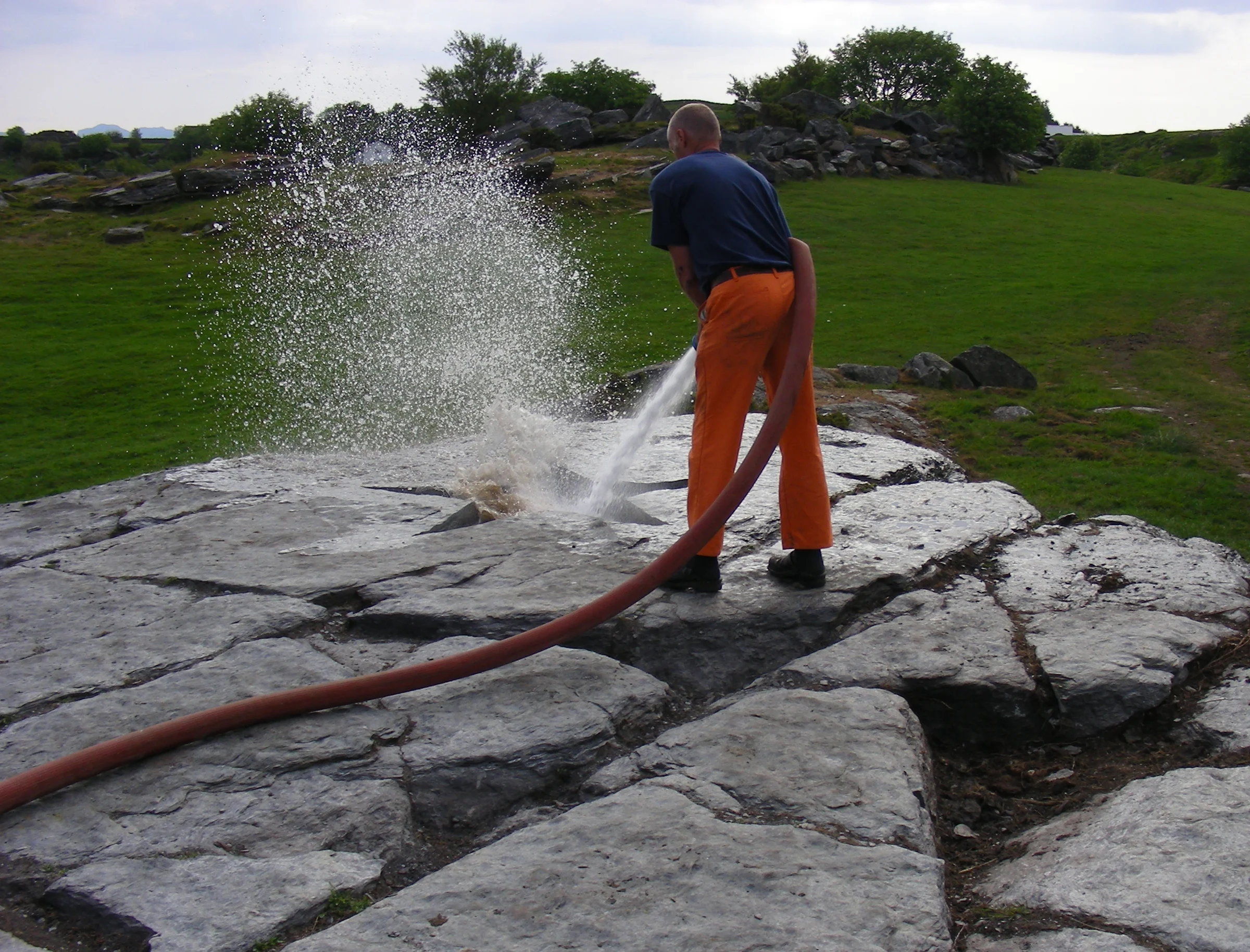 Kunstneren i færd med at skabe sit stjerneformede himmelsoejl, skabt af den daglige nedbør her på Vestlandet i Norge.