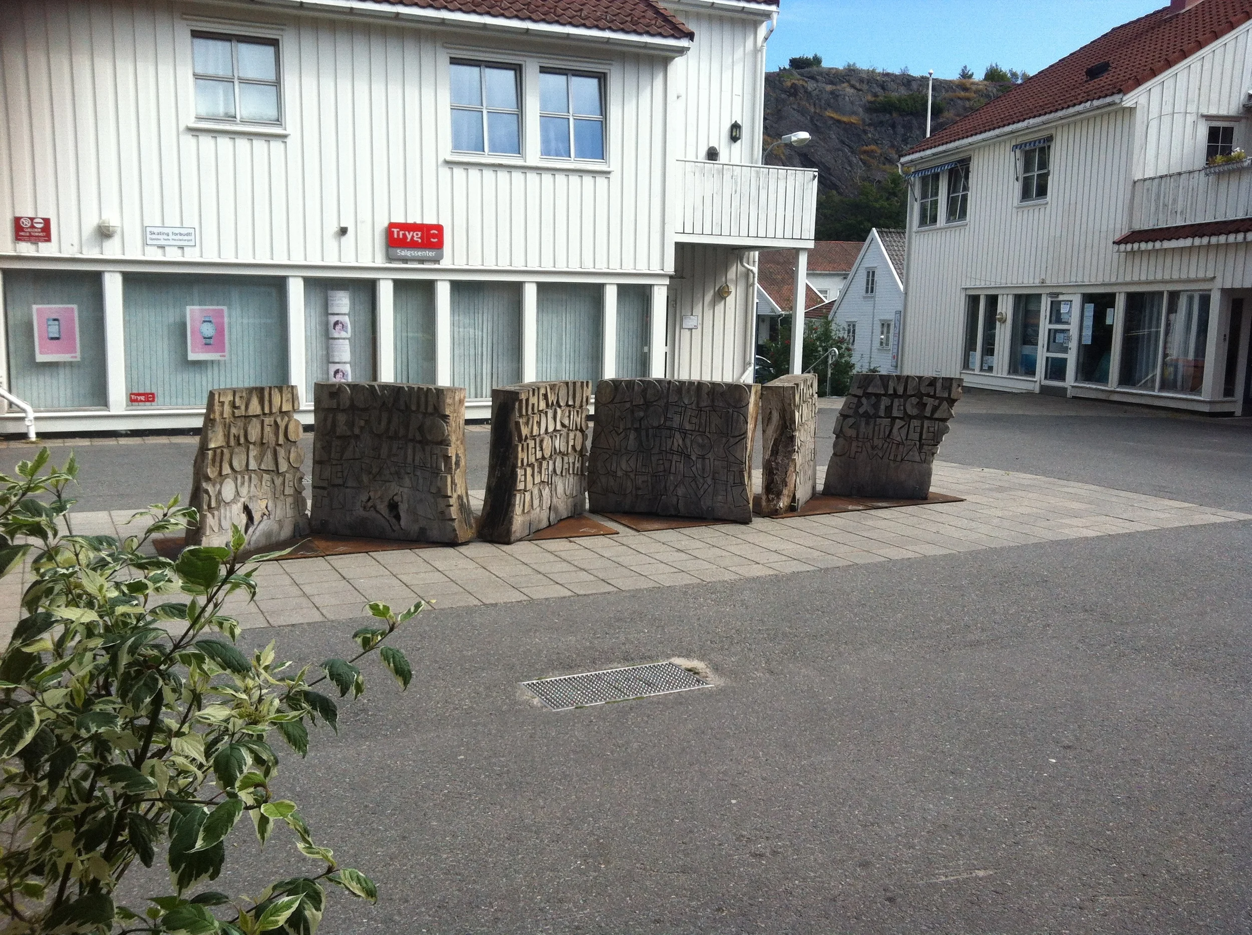 De 7 SCRIPTORIUM skulpturer blev udstillet på torve og pladser i Grimstad, Norge i sommeren 2012.