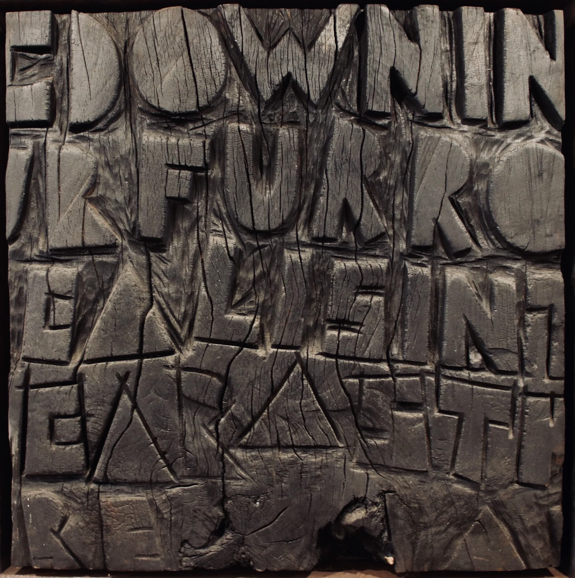 Her undergår BOOK sin store, nødvendige transformation. De enkelte bogsider skæres i kvadrat, brændes sorte, får træimprægnering og indrammes i kraftige jernrammer. BOOK er nu blevet et selvstændigt indendørs relief - med rødder i det oprindelige Scriptorium.
