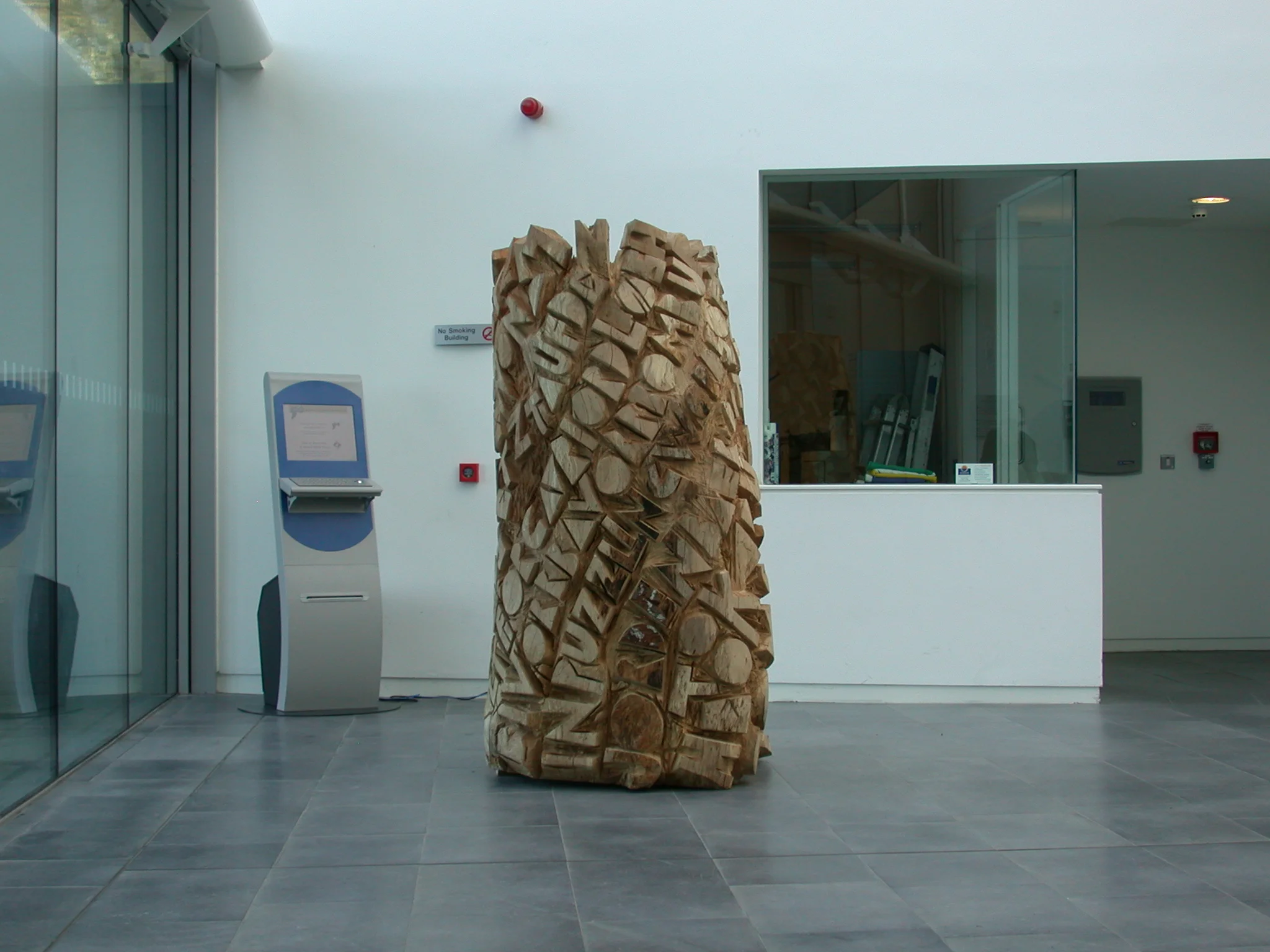 Det sammenstød, som frembragte idéen til dette projekt, var mit hidtidige arbejde med skulptur og skrift i mødet med den fældede kæmpebøg.